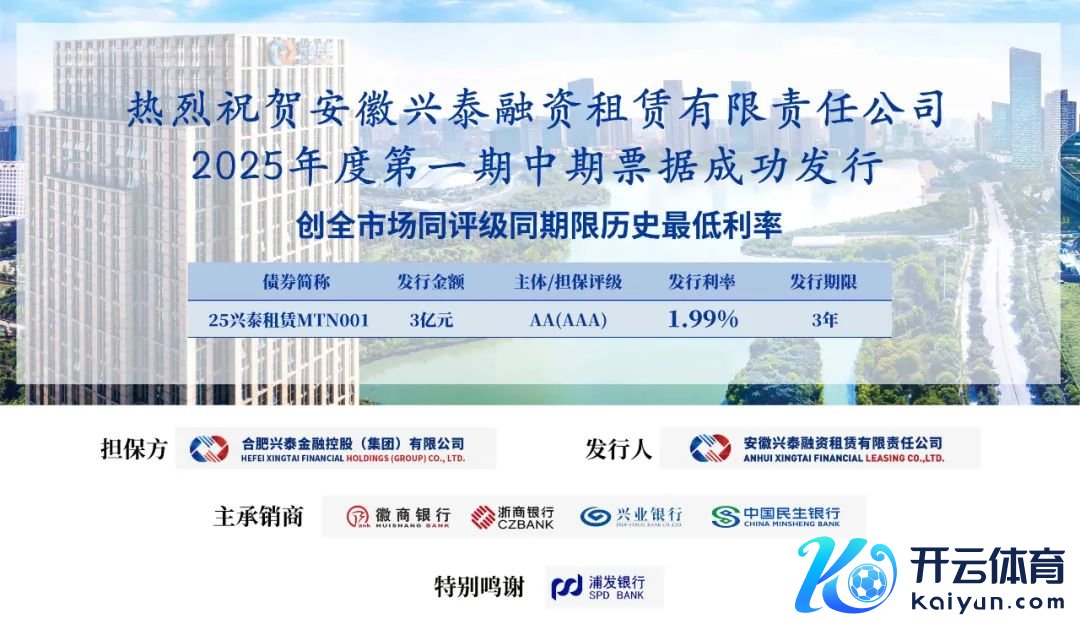 1月8日,兴泰租借顺利刊行2025年度第一期中期单子,竣事债券融资“开门红”。本期中票刊行限制3亿元,刊行期限3年,由兴泰控股提供增信保险,票面利率1.99%,创全商场同评级主体同时限历史最低利率。