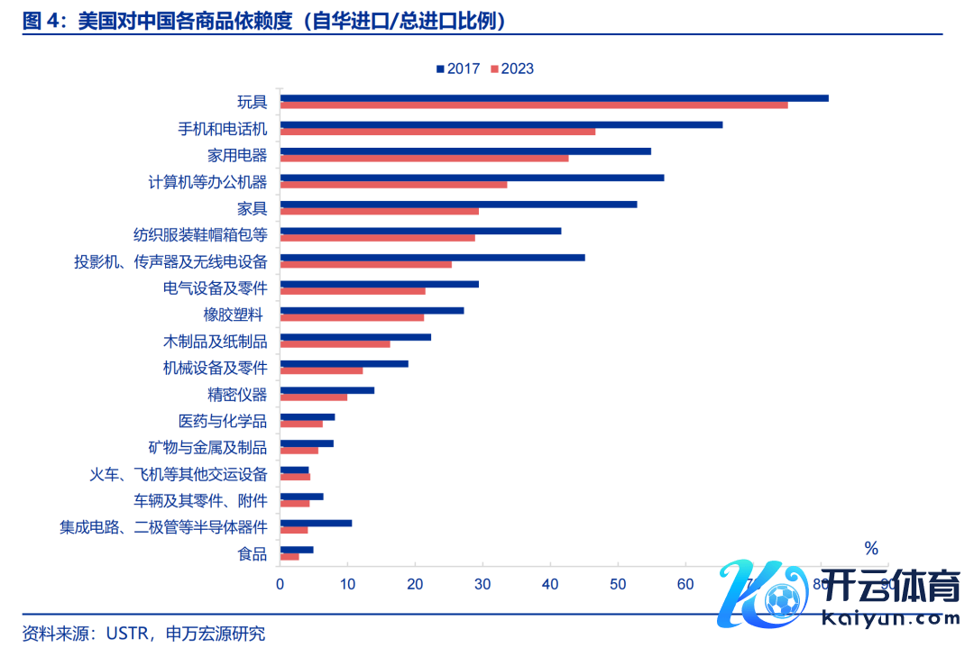 “抢出口”才是推升12月出口的主要原因,其一体现为对好意思国的“抢出口”,更多聚会在中间品、成本品范围,而不是挥霍品。2018-2019年关税布景下,对好意思“抢出口”的商品主要基于“高依赖度”和“供应链较难脱钩”的两个特征。但面前手机(从65.5%下滑到46.6%)、计较机等办公机器(从56.8%下滑到33.6%)等好意思对华高依赖度商品,依赖度在本年已大幅下滑。因此,12月出口中手机(-15.3pct至-15.8%)、自动数据管理成就(-6.7pct至9.5%)出口增速也施展偏弱。而“抢出口”目下更多聚会在好意思国对华供应链难以脱钩的坐褥费力顺次,这亦然零丁于基于依赖度情势的“抢出口”。具体来看,通用机械(+15.0pct至29.0%)、汽车零部件(+10.0pct至15.6%)等商品的出口增速较上月均显着上行。从供应链视角看,加工营业入口的回升雷同体现了对好意思“抢出口”的逻辑,12月机电产品入口增速回升8.4pct至6.7%。