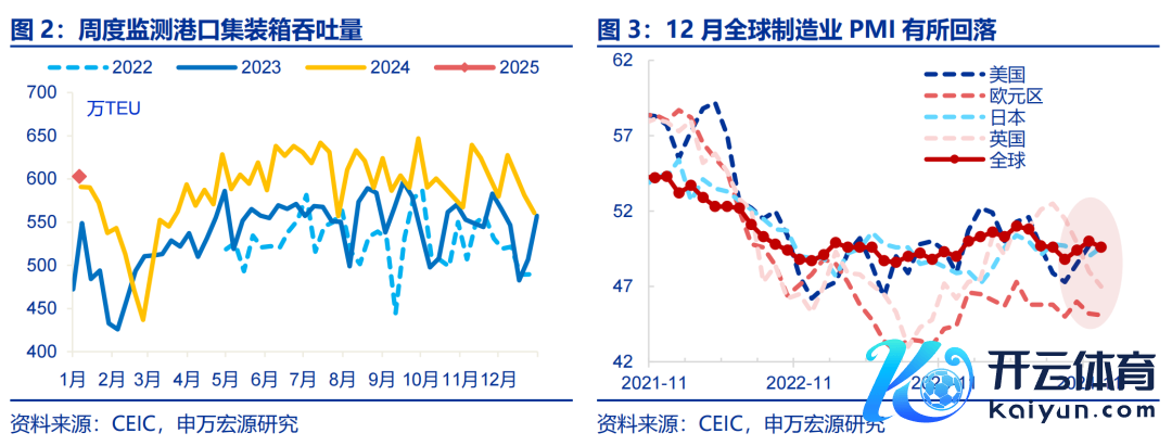 12月出口超预期回升,但外需改善或并非主因。12月出口同比(好意思元计价)较11月回升4.0个百分点至10.7%,环比增速(7.6%)也显着强于季节性水平(5.4%)。但从三个月出动平均的行家制造业PMI来看,12月较11月仅小幅上行0.3pct至49.7%。其中,好意思国、欧元区的改善幅度有限,而英国则出现回落。分出口国别看,12月对欧盟(+1.9pct至8.9%)的出口改善幅度较小,对日本的出口增速则显耀回落。
