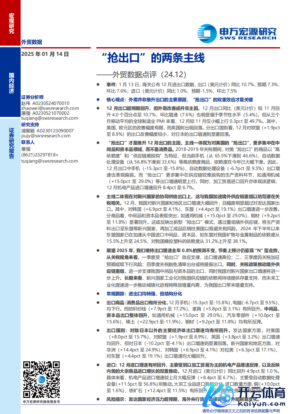 《“抢出口”的两条干线——外贸数据点评(24.12)》