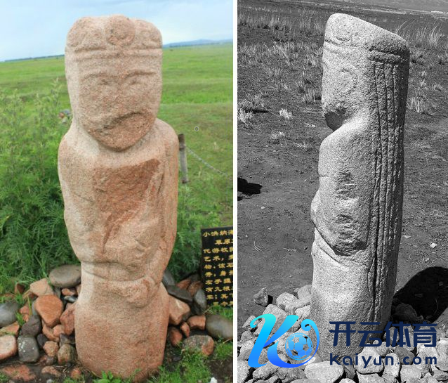▲上图:新疆昭苏草原的突厥石东说念主(图片起原:网易);下图:桥陵前的执笏石东说念主像(图片起原:文物陕西微信公众号)
