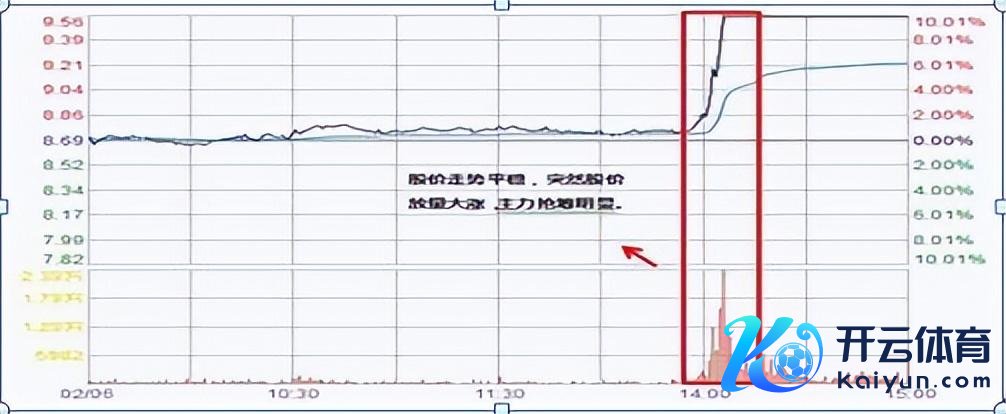 3、股价颠簸后,倏得上攻,作陪冉冉放量冲破当日分时高点。